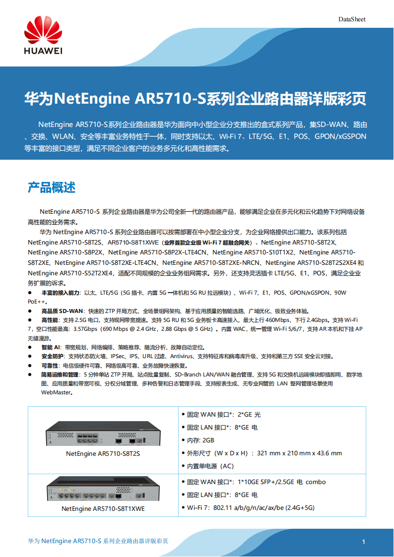 华为SD-WAN设备AR5710系列路由器
